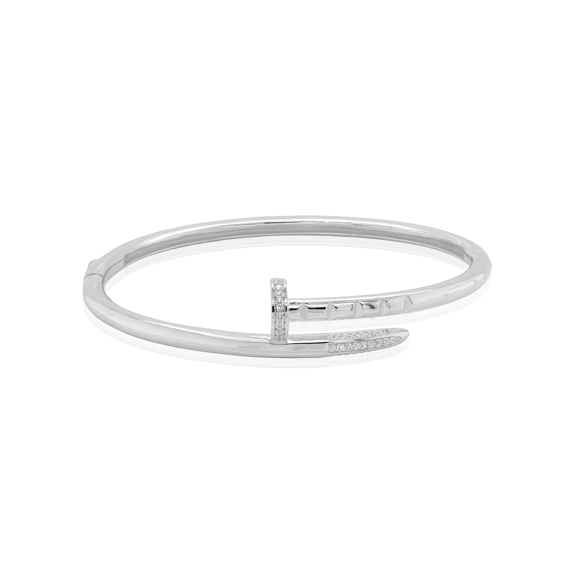 Sterling Silver Designer Inspired CZ Nail Open Bangle