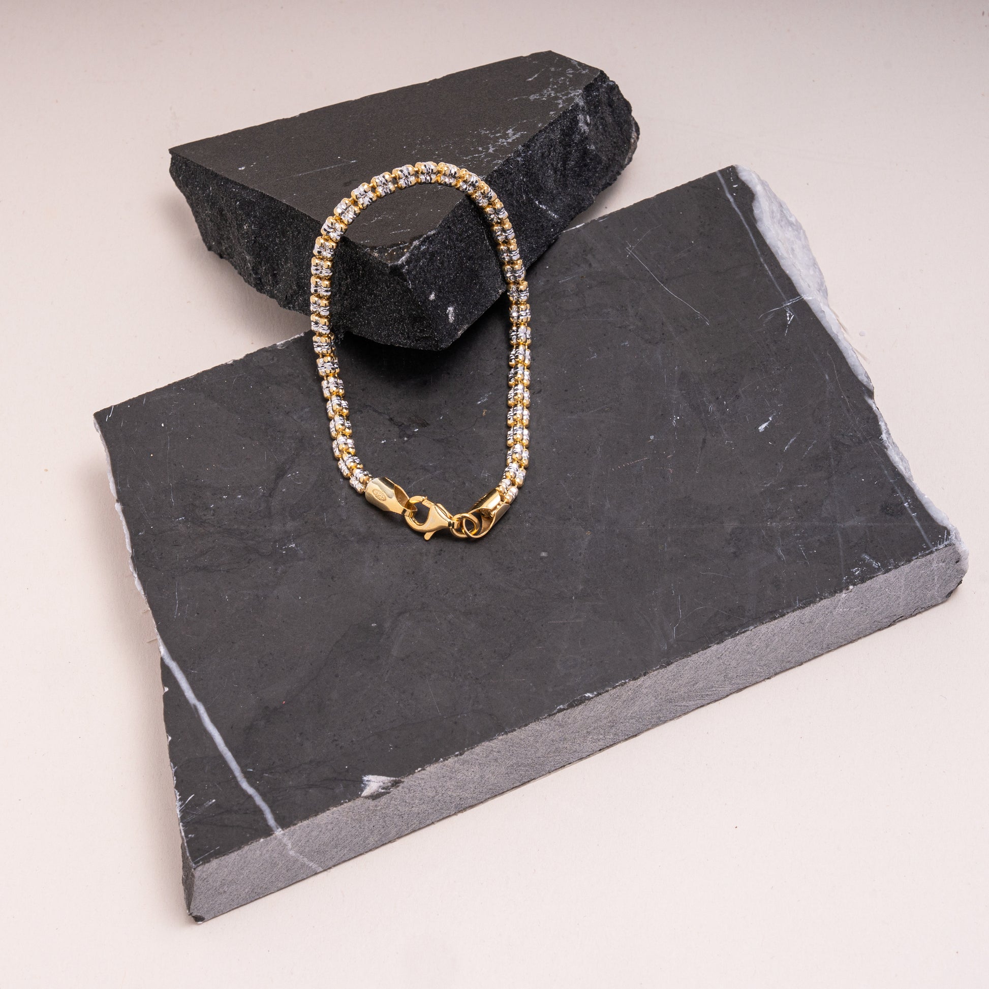 This Sterling Silver and Gold Vermeil Two-Tone Fancy Ice Chain bracelet is crafted to stand out. Featuring an eye-catching iced-in style chain with alternating silver and gold vermeil tones, this piece delivers the perfect balance of luxury and edge.